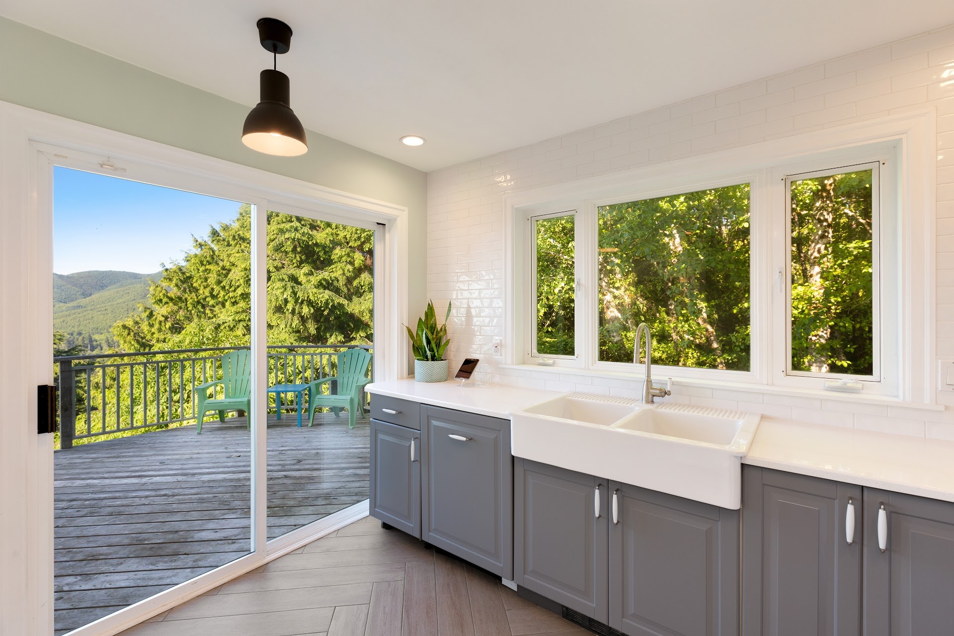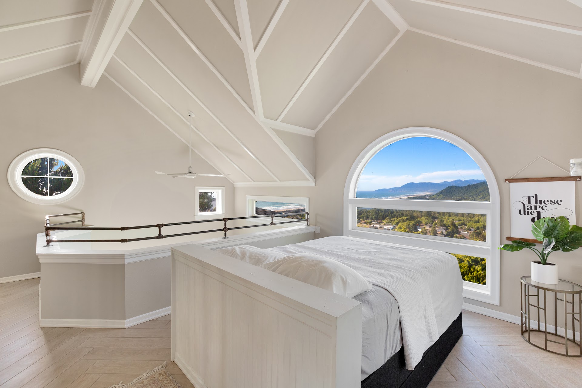 Trendy hilltop home with astounding ocean & mountain views on 1.21 acres. This masterful renovation features an oversized lower bedroom. A 3rd story master bedroom loft with morning ocean views and star gazing at night. The main floor features the living space with views from every window. Create intimate outdoor spaces on either 2 of the decks.
