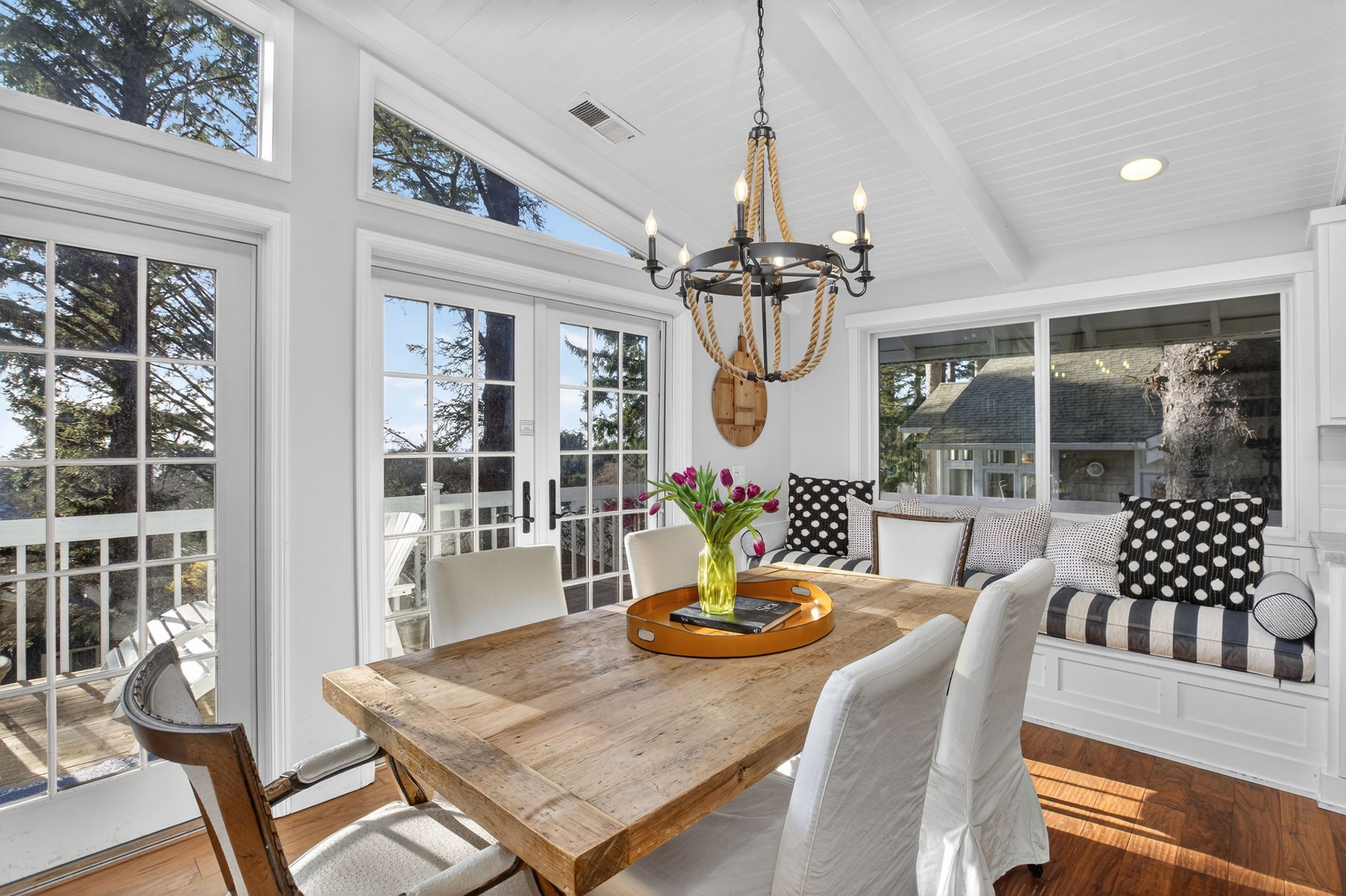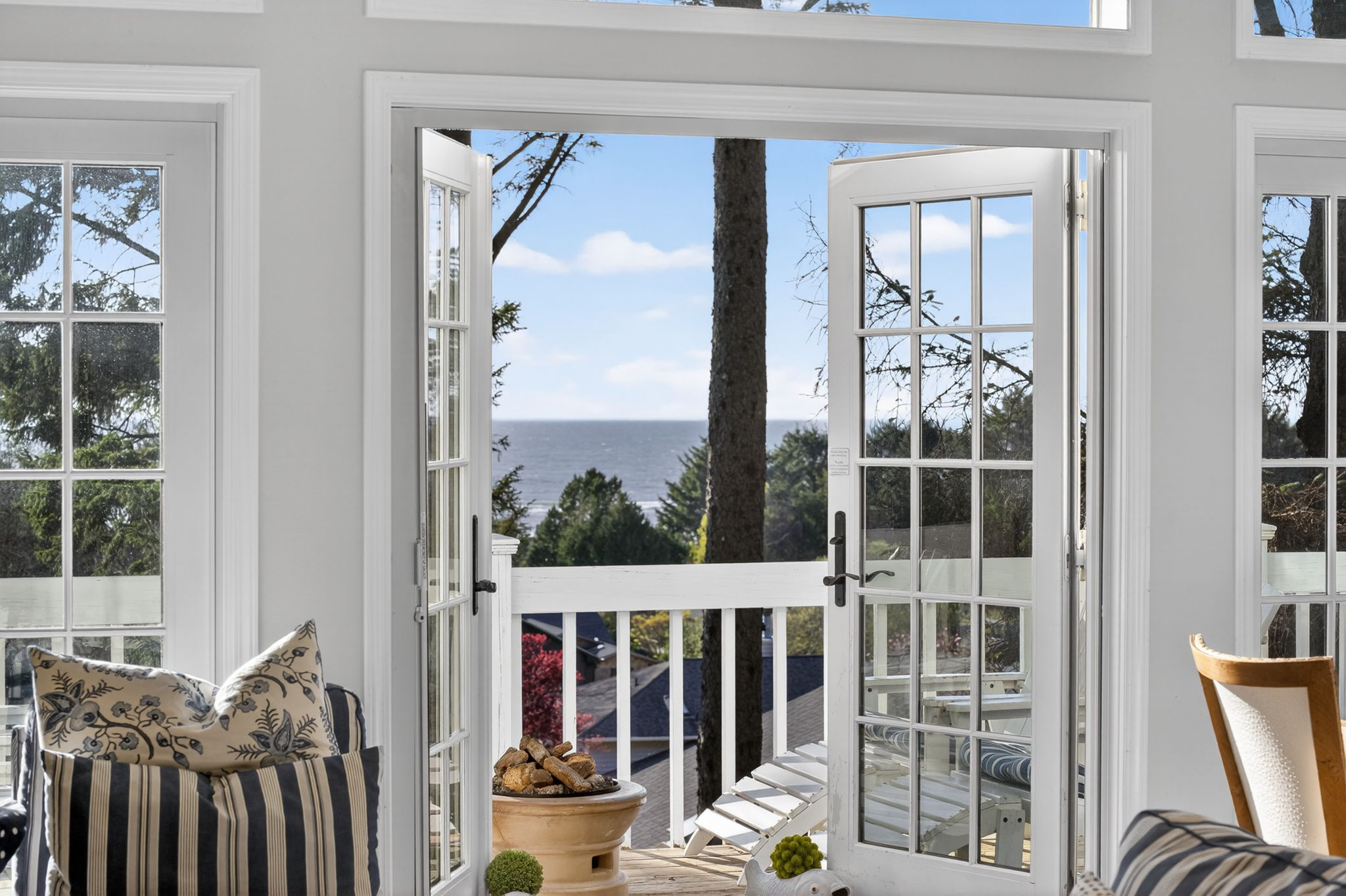 Fully furnished & thoughtfully curated, coastal retreat, blending East Coast elegance with Oregon Coast serenity in Tolovana Beach. Inspired by ‘Something’s Gotta Give’, this 3 level home features vaulted ceilings & expansive west facing windows with distant ocean views. The great room offers a dramatic stone fireplace, custom built-ins, and triple French doors opening to a spacious deck. Gourmet kitchen with industrial gas range, griddle, grill, double ovens, wine cooler, Carrara marble, & custom cabinetry. Luxurious primary suite with fireplace, sitting area, private deck, steam shower, & soaking tub. Three additional bedrooms are thoughtfully designed with custom finishes. Multiple living spaces provide flexibility, including a lower-level game room. Located on a dead-end street, surrounded by forest, the home is approximately half a mile from beach access, minutes to downtown Cannon Beach & Ecola State Park, this property combines privacy, proximity, and lifestyle appeal. Contact your broker to schedule a private showing or to receive the full feature sheet.