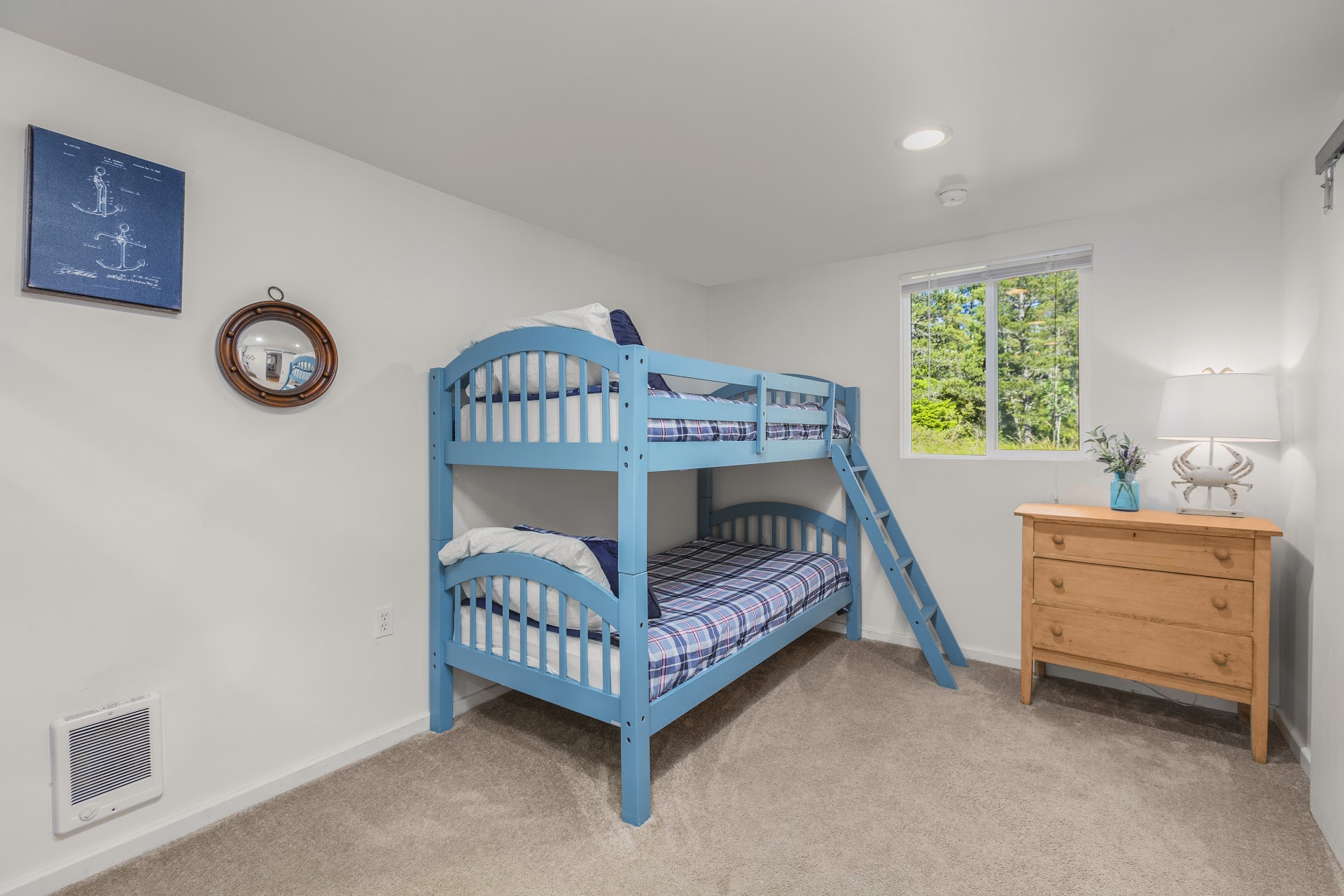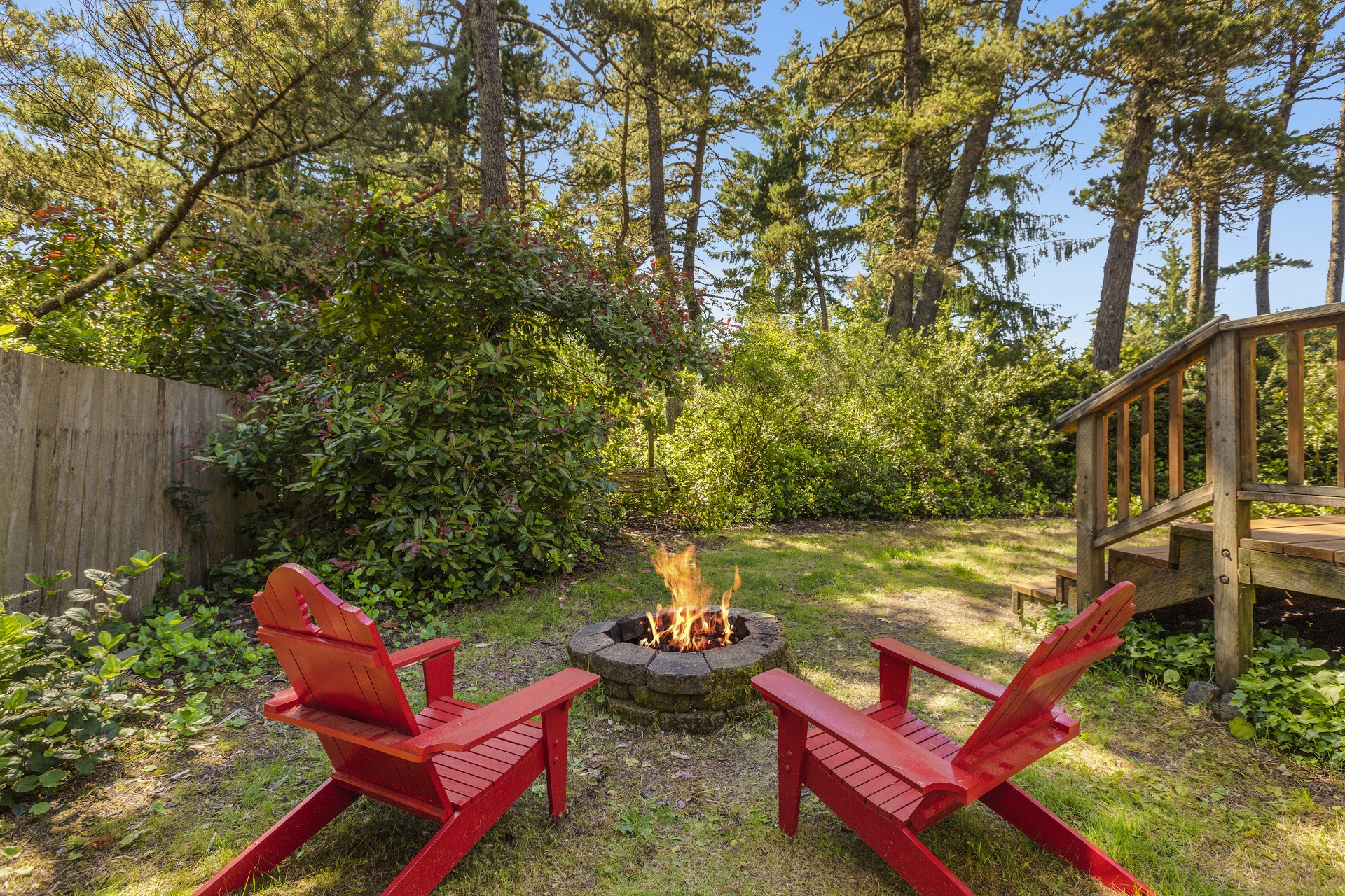 native plants and has a fire pit to enjoy. The layout of the home is simple and functional with the bunk room