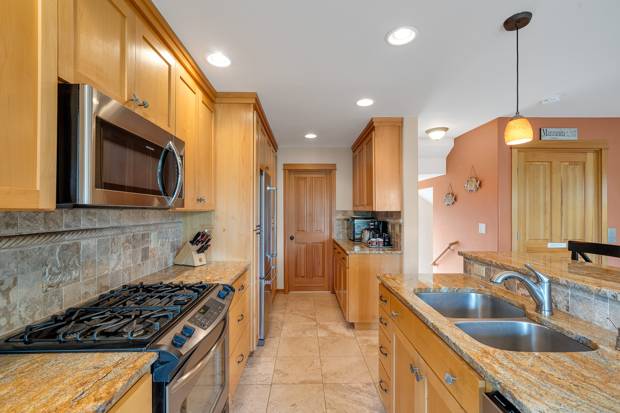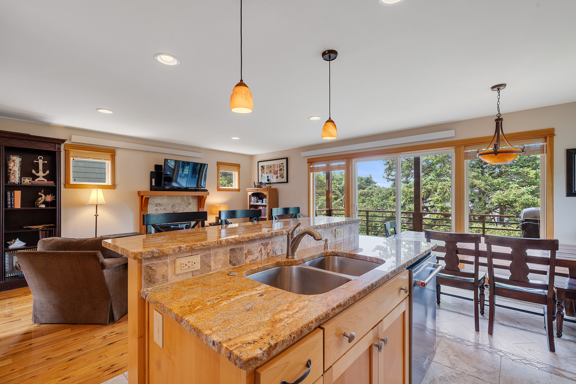 Steps from the beach, this 3 bedroom, 2.1 bathroom end-unit condo offers a partial ocean & Neahkahnie Mountain views. Make your way between the floors with the interior elevator. The home features two covered decks, one off the main living area & another shared by the two lower bedrooms providing usable outdoor space year-round. The great room located on the middle floor includes a gas fireplace, hardwood floors, and a custom kitchen with live-edge granite surfaces, stainless appliances, & alder cabinets. The top floor, primary suite, features vaulted wood ceilings & an ensuite bath. The home is being offered as furnished. Located near walking paths for you to enjoy Manzanita shops, golf, & Nehalem Bay State Park trails. Call your broker to schedule a viewing & for more info.